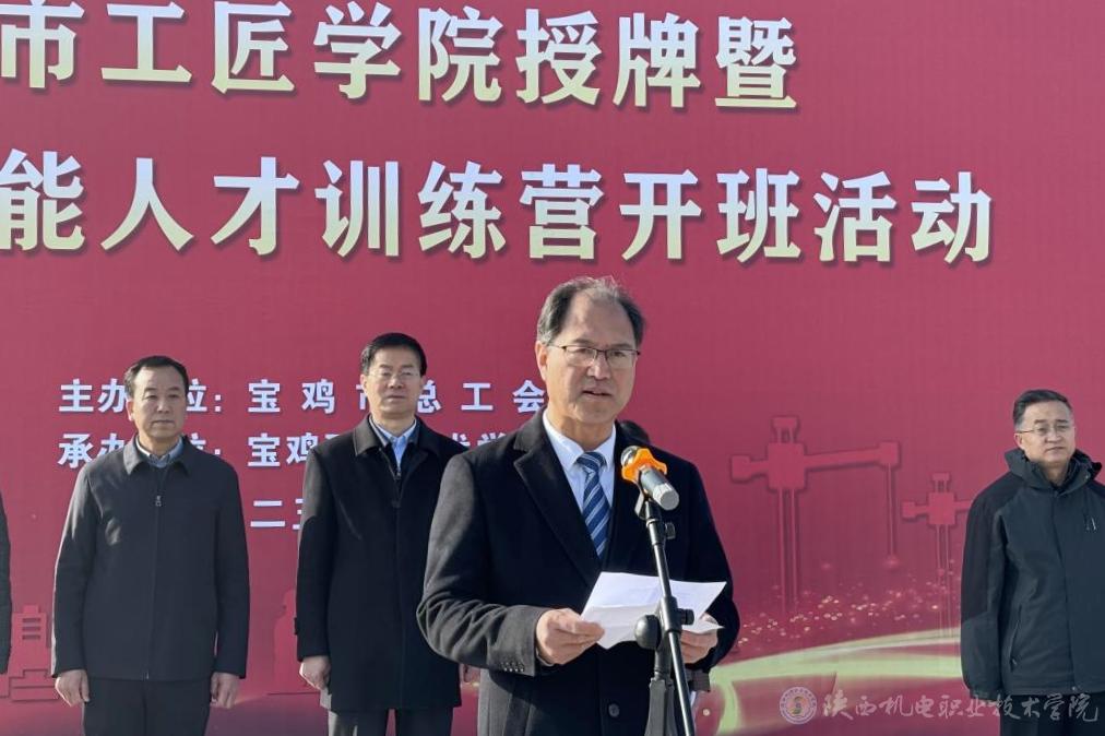 活动现场,宝鸡市委常委、副市长高宏真为AC米兰中文官方网站和宝鸡职业技术学院授予“宝鸡市工匠学院”牌匾。省总工会职工技术创新协作中心主任贺娟讲话。