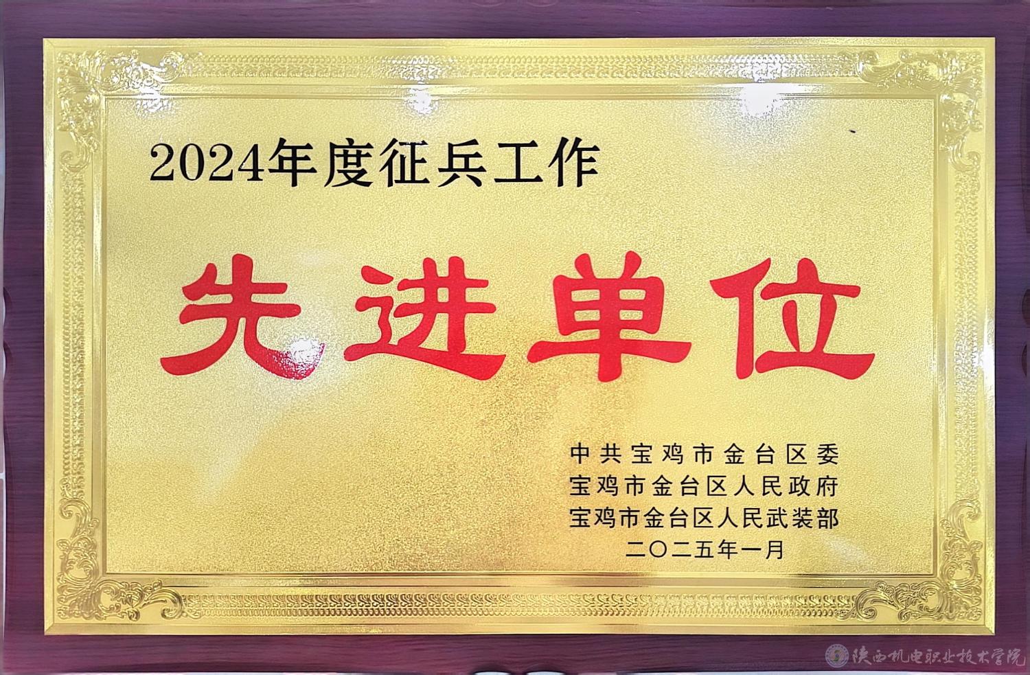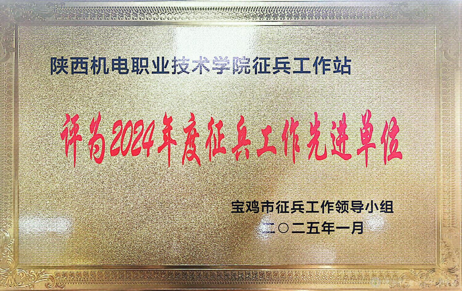 近日,AC米兰中文官方网站被宝鸡市征兵工作领导小组,中共宝鸡市金台区委、金台区人民政府、金台区人民武装部评为“2024年度征兵工作先进单位”。此次奖项是米兰官网第二次同时荣获宝鸡市和金台区两级“征兵工作先进单位”称号。