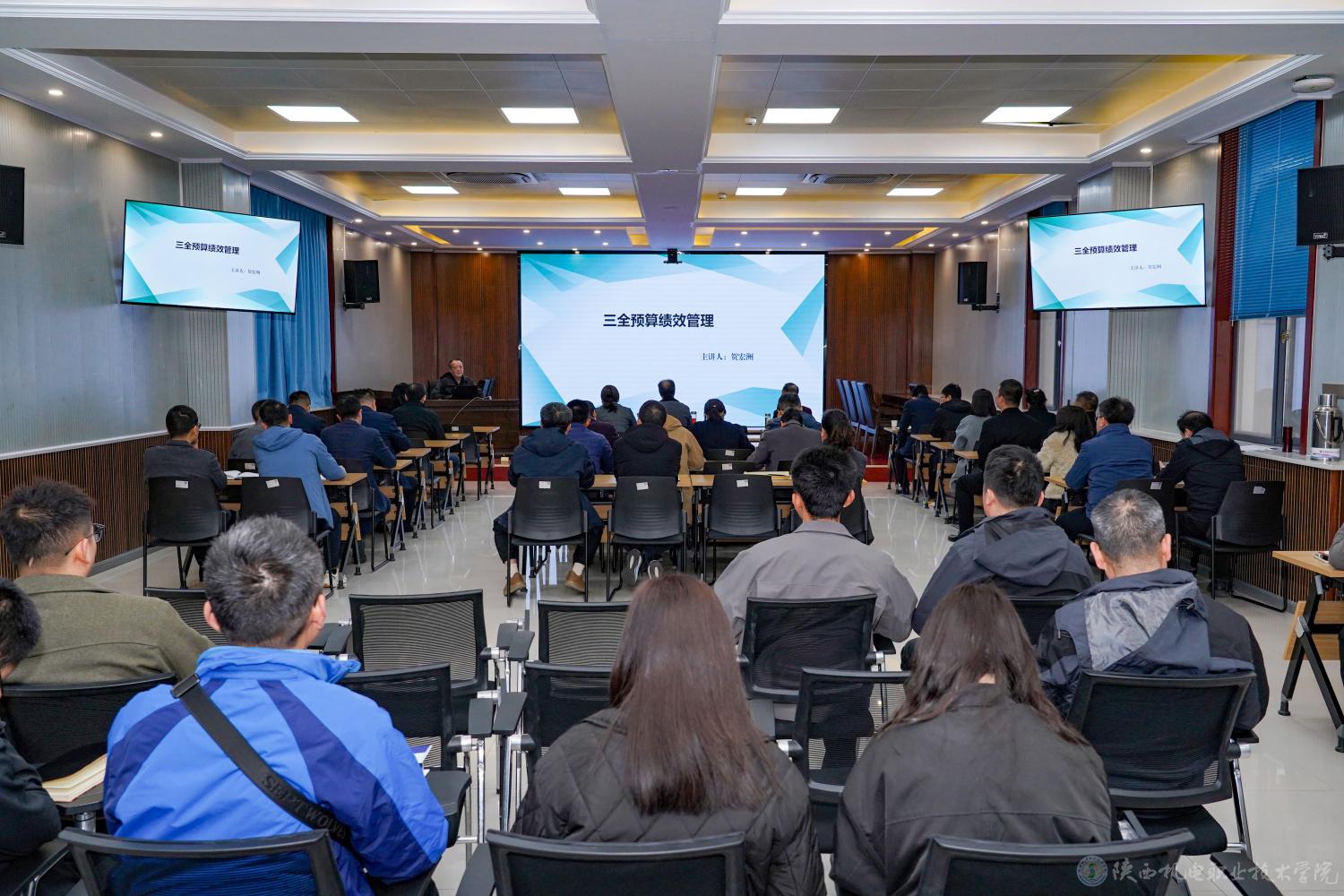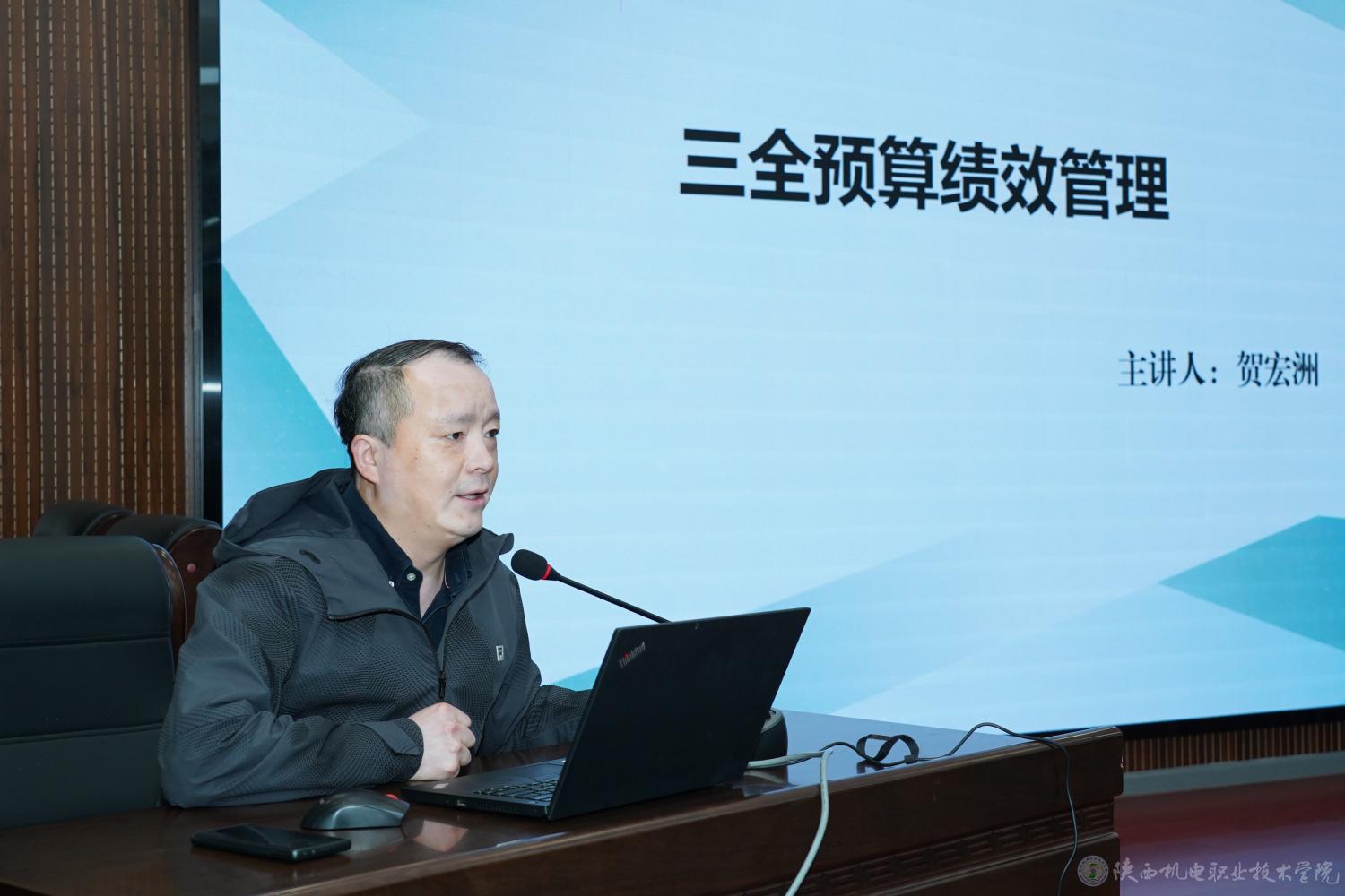 3月11日上午,AC米兰中文官方网站在蟠龙校区博学楼111会议室召开专项资金项目绩效评价专题培训会,会议邀请宝鸡市财政局综合科科长贺宏洲作了题为《三全预算绩效管理》的专题辅导报告。学校党委书记伊逊智,党委副书记、纪委书记陈红梅,党委委员、副院长张克,党委委员、院长助理赵争东,党委委员、宣传部部长李明,中层干部、二级学院负责人及专项资金项目负责老师参加培训会。培训会由学校总会计师、资产管理处处长严炜主持。