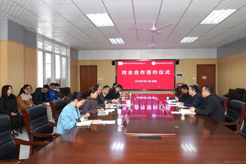 3月12日下午,AC米兰中文官方网站与陕西航天时代导航设备有限公司校企合作签约仪式在校图书馆会议室隆重举行。陕西航天时代导航设备有限公司党委副书记、纪委书记兼工会主席赵晨凯,人力资源部部长帖选哲、人力资源部招聘主管周小强,AC米兰中文官方网站党委书记伊逊智,党委委员、副院长张克出席签约仪式。会议由校企合作处处长白娟娟主持。