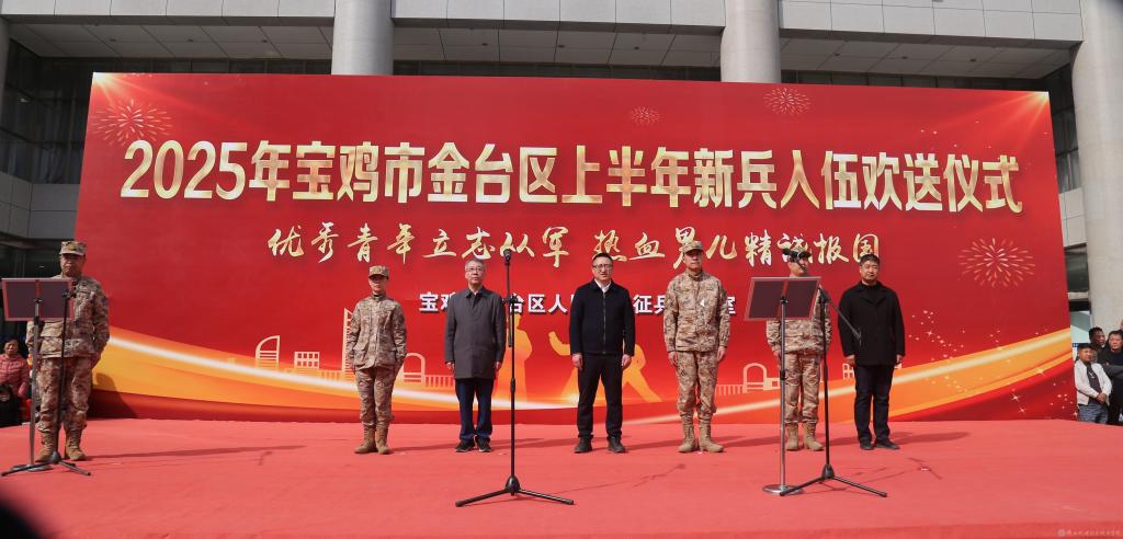 3月17日下午,2025年宝鸡市金台区春季新兵入伍欢送仪式在金台市民中心广场举行。AC米兰中文官方网站党委学工部部长、学生处处长、人武部部长王建斌代表学校参加欢送仪式。活动由金台区人武部政委宋景富主持。
