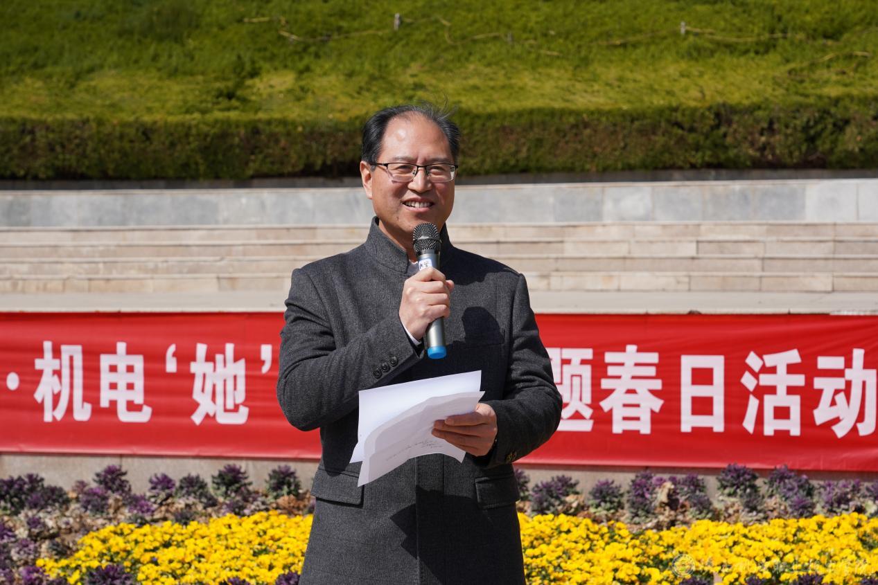 伊逊智致开幕辞,他代表学校党政领导班子,向积极参加此次活动的教职员工表示热烈欢迎和衷心的感谢。伊逊智指出:“从三尺讲台到科研一线,机电巾帼始终以‘苔花如米小,也学牡丹开’的进取精神,构筑起学校高质量发展的‘她’矩阵,为学校发展注入强劲动能”。
