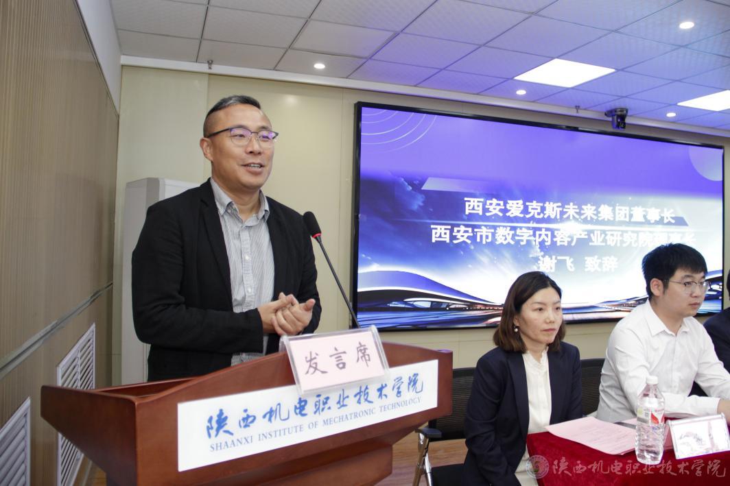 西安爱克斯未来集团董事长谢飞在致辞中详细介绍了西安市未来数字内容产业研究院的相关情况。他指出,当前产业正面临人才供需失衡的挑战,行业对高素质专业人才的需求尤为迫切。同时表示,集团高度重视与米兰官网的合作,将在人才培养、专业建设、技术服务以及创新创业等领域展开深度协同,通过资源共享与机制创新,实现“人才共育、成果共享”,共同推动数字内容产业的高质量发展。