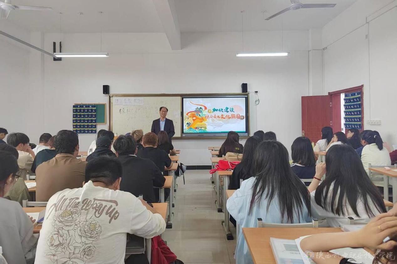 4月14日下午,AC米兰中文官方网站党委书记伊逊智在博学楼415教室为23铁道运管1、2合班80余名学生讲授形势与政策课《加快建设社会主义文化强国》专题内容。