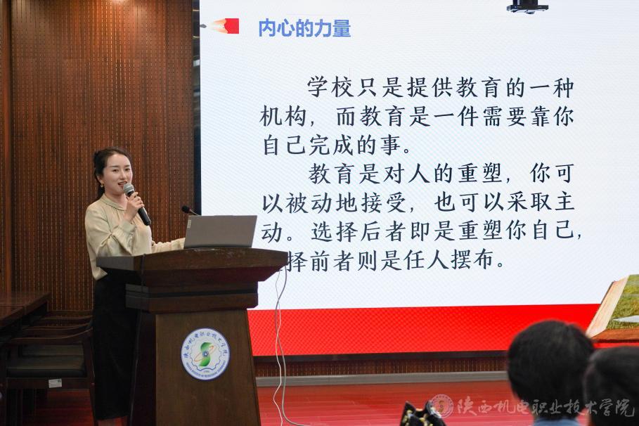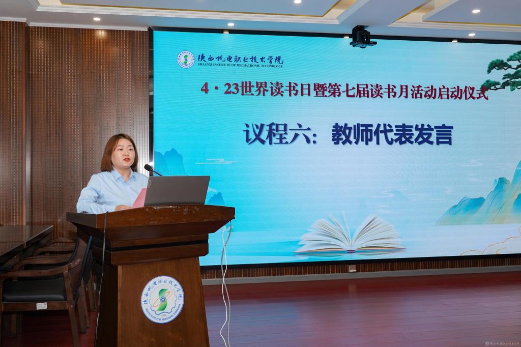 学校还邀请到宝鸡市图书馆原副馆长,研究馆员陈碧红为与会师生作题为《厚德强技,让阅读赋能成长》的主题讲座,陈馆长以校训“厚德强技 立身立业”开题,深入讲述人为什么要读书、读好书,并引导学生探讨网络时代手机及短视频影响下如何保持阅读习惯、工业流水线模式下如何通过阅读改变人生赛道、理工科学生是否需要读文史类书籍、AI时代需不需要阅读等。讲座内容深入浅出,入脑入心,师生收获颇丰。