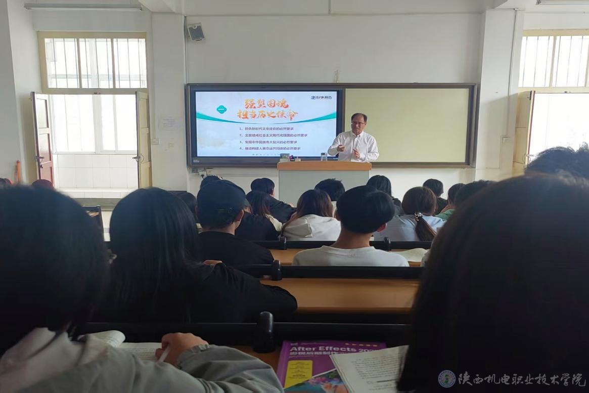 4月21日下午,AC米兰中文官方网站党委书记伊逊智在宝福路校区第二教学楼207教室为23动漫制作、21动漫五年1、2合班90余名学生讲授形势与政策课《加快建设社会主义文化强国》专题内容。