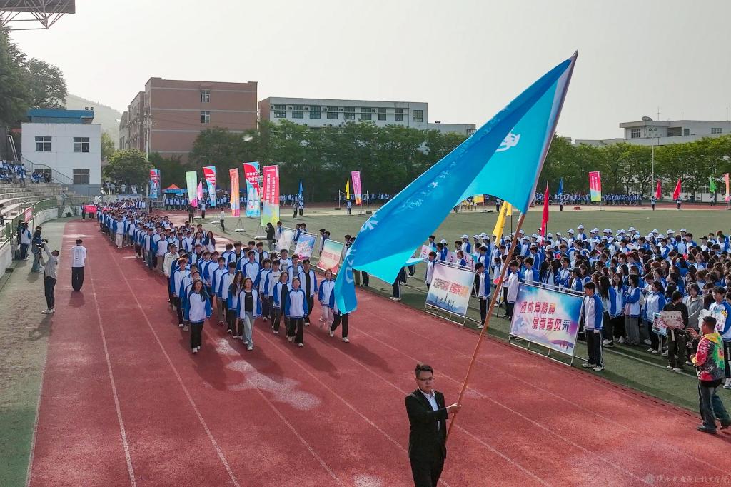 上午8时,运动会开幕式在慷慨激昂的运动员进行曲中拉开帷幕。国旗方阵、院旗方阵、彩旗方阵、裁判员代表队、运动员代表队迈着矫健的步伐依次步入运动场接受检阅。