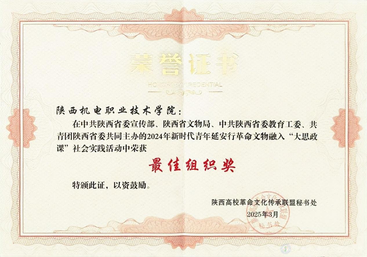 会上,陕西高校革命文化传承联盟公布了新时代青年延安行革命文物融入“大思政课”社会实践活动优秀团队表彰名单,米兰官网在中共陕西省委宣传部、陕西省文物局、中共陕西省委教育工委、共青团陕西省委共同主办的2024年新时代青年延安行革命文物融入“大思政课”社会实践活动中荣获“最佳组织奖”。