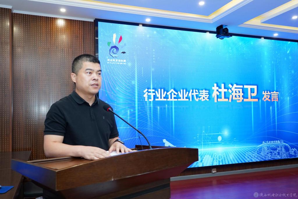 渭滨区互联网产业园党总支书记、宝鸡市民营企业协会副会长兼秘书长、宝鸡华信诚电子科技有限公司总经理杜海卫在发言中高度认可米兰官网在产教协同育人中的实践成果,指出校企共建产业学院是深化职业教育改革的重要路径。
