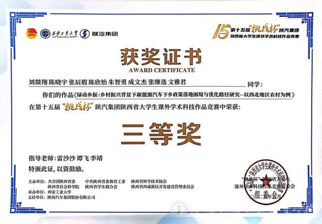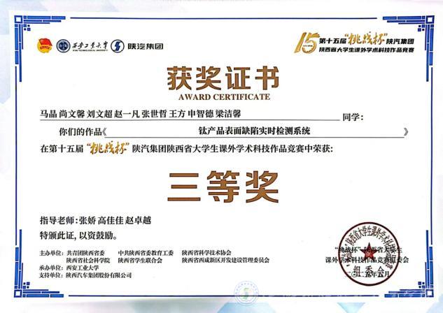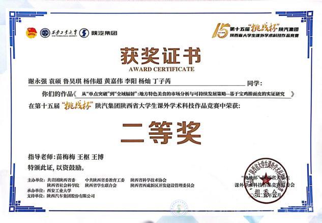 米兰官网谢永强、袁硕、鲁昊琪、杨伟超、黄嘉伟、李阳、杨灿、丁子芮同学的作品《从“单点突破”到“全域辐射”:地方特色美食的市场分析与可持续发展策略--基于宝鸡擀面皮的实证研究》荣获大赛二等奖;马晶、尚文馨、刘文超、赵一凡、张世哲、王方、申智德、梁洁馨同学的作品《钛产品表面缺陷实时检测系统》荣获三等奖;刘燚翔、陈晓宇、张辰瑕、陈欣怡、朱智勇、成文杰、张继选、文雅君同学的作品的《绿动乡振:乡村振兴背景下新能源汽车下乡政策落地困境与优化路径研究--以西北地区农村为例》荣获三等奖,这些成绩的取得,充分彰显了米兰官网师生在学术科技领域的深厚底蕴和无限潜力。
