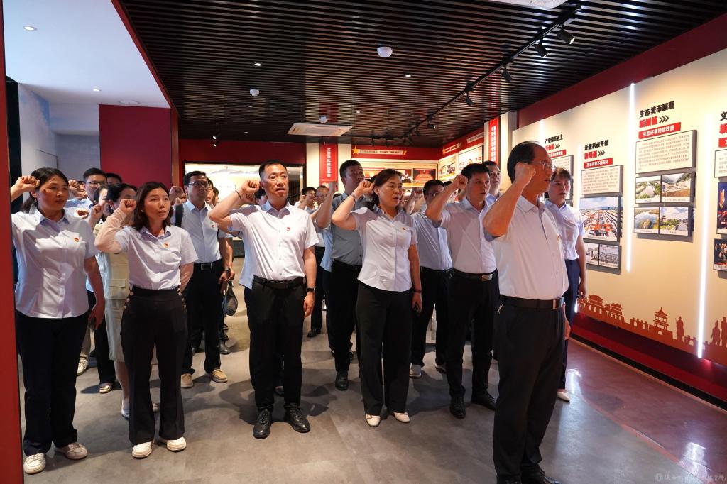 参观结束后,全体党员干部面对党旗重温入党誓词,这不仅是对入党初心的深刻回顾,更是一次心灵的党性洗礼,激励全体党员干部“不忘初心、牢记使命”。