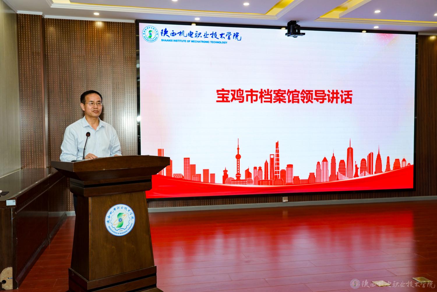 闫海成在讲话中介绍了近年来宝鸡市档案馆的创新发展成果,校地双方未来在资源共享、人才培养、文化宣传等领域深度合作。他在题为《深入学习贯彻习近平总书记重要批示精神 奋力开创档案事业发展的新局面》的主题报告中,从理论到实践系统阐释了新时代档案工作的使命与方向。