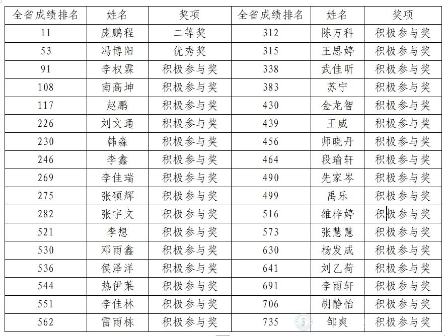 获奖学生名单