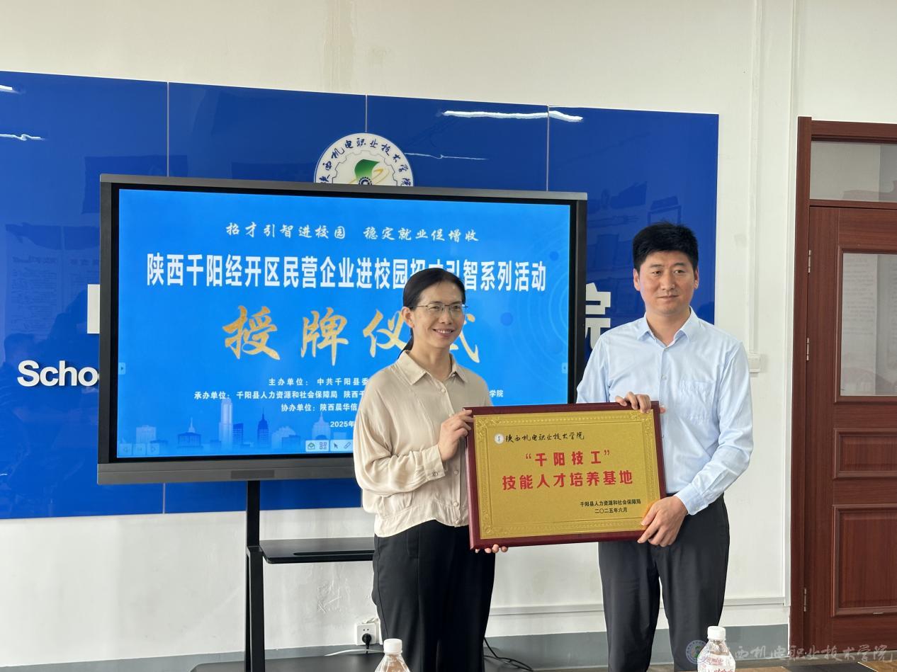 随后,党委副书记张琴代表学校与千阳县政府领导及陕西森宝蜂业有限公司等企业代表进行深入交谈,并达成合作意向。双方相互授予“千阳技工”技能人才培养基地与技能人才就业基地合作牌。