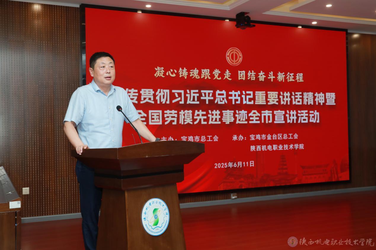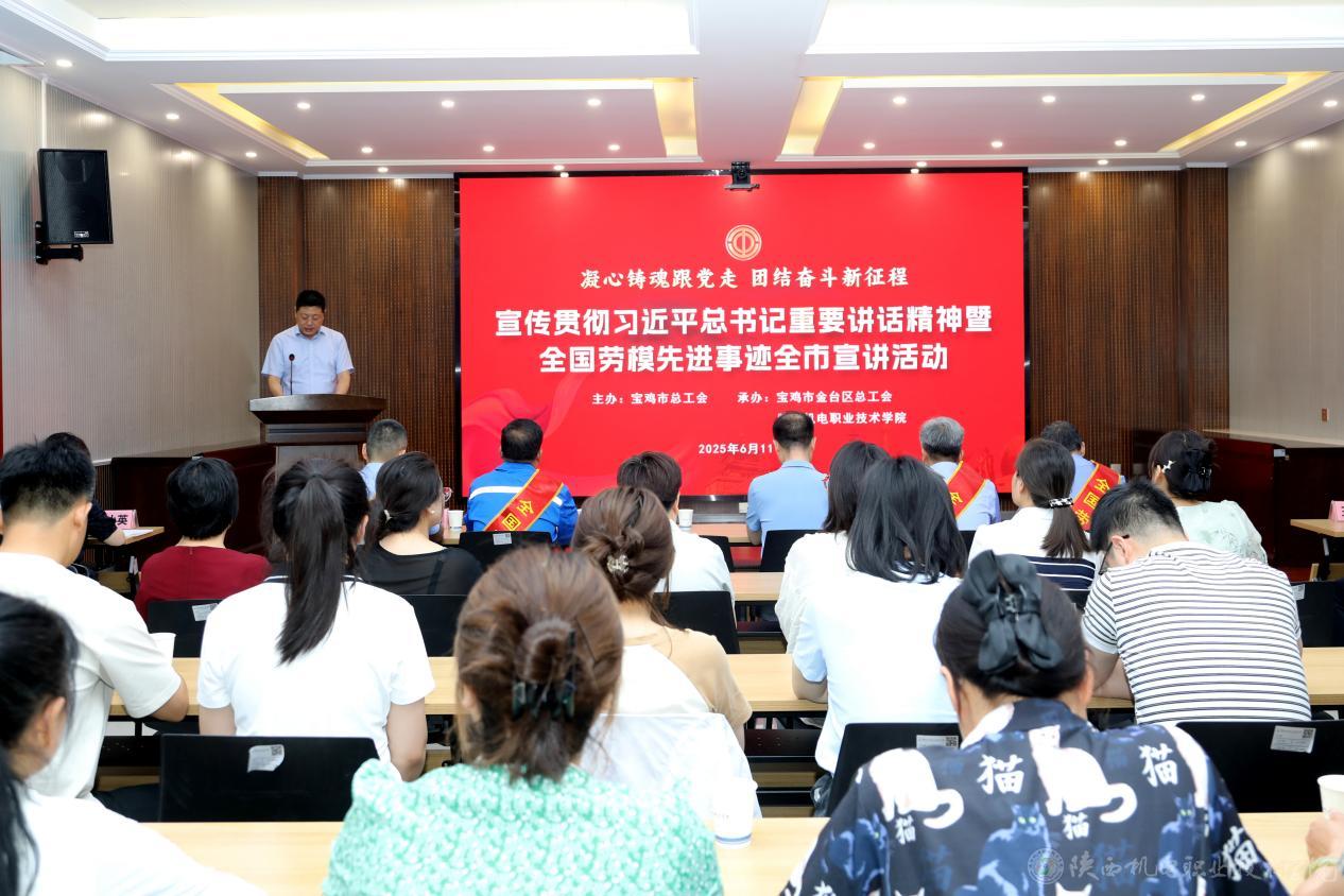 为深入学习贯彻习近平新时代中国特色社会主义思想、党的二十大精神和二十届二中、三中全会精神,宣传贯彻习近平总书记在庆祝中华全国总工会成立100周年暨全国劳动模范和先进工作者表彰大会上的重要讲话精神,6月11日,AC米兰中文官方网站联合宝鸡市金台区总工会开展宣传贯彻习近平总书记重要讲话精神暨全国劳模先进事迹宣讲活动。