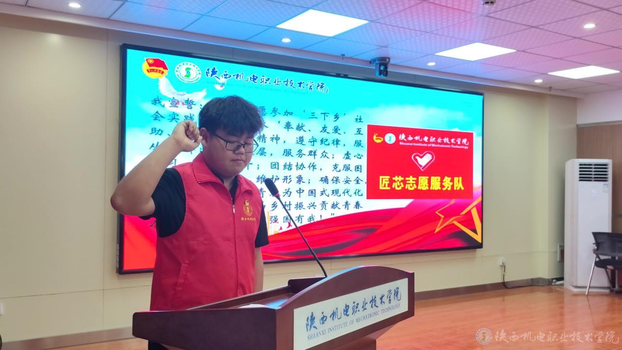 授旗结束后,实践队员代表张顺铭带领全体实践队员庄严宣誓,坚定的语气、饱满的热情,彰显了队员们投身实践、完成任务的坚定信念。