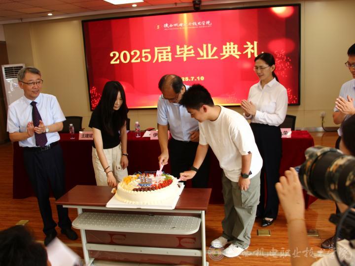 典礼最后,师生共同切开纪念蛋糕并合影留念。镜头下,一张张笑脸定格成永恒,为这场毕业典礼画上圆满句号。