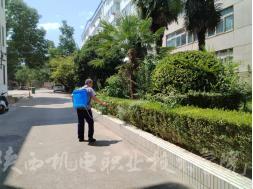 全域整治展新颜,在两个校区同步开展杂草清理工作,组织人员对校园绿化带、闲置区域的杂草进行彻底清除;加强病虫害防治,喷洒环保药剂,避免校园蚊虫滋生,保护师生身体健康;对校园公共区域进行深度保洁,从路面到墙角,全方位清洁,营造出洁净、优美、宜人的校园环境。