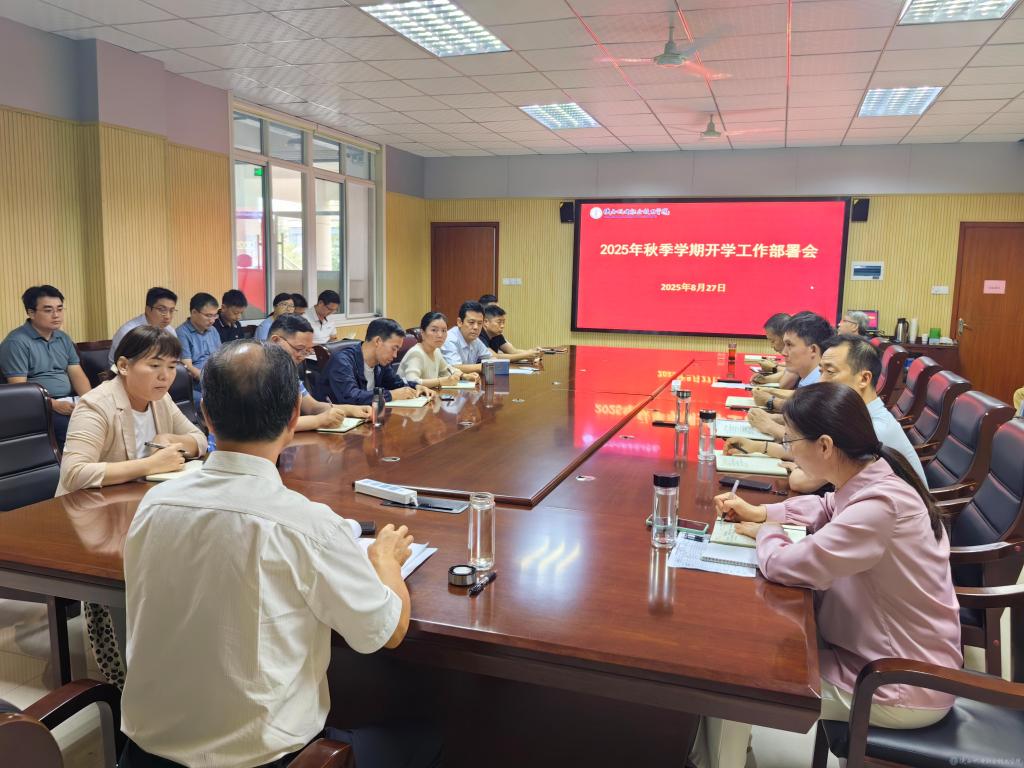 8月27日,学校在蟠龙校区图书馆二楼会议室召开2025年秋季学期开学工作部署会,全面安排新学期开学各项工作,确保新学期平稳有序开局。学校党委书记伊逊智主持会议并讲话,党委副书记张琴,党委副书记、纪委书记陈红梅,党委委员、副院长张克,党委委员、院长助理赵争东,党委委员、宣传部部长李明出席会议,各部门负责人和二级学院书记、院长参加会议。
