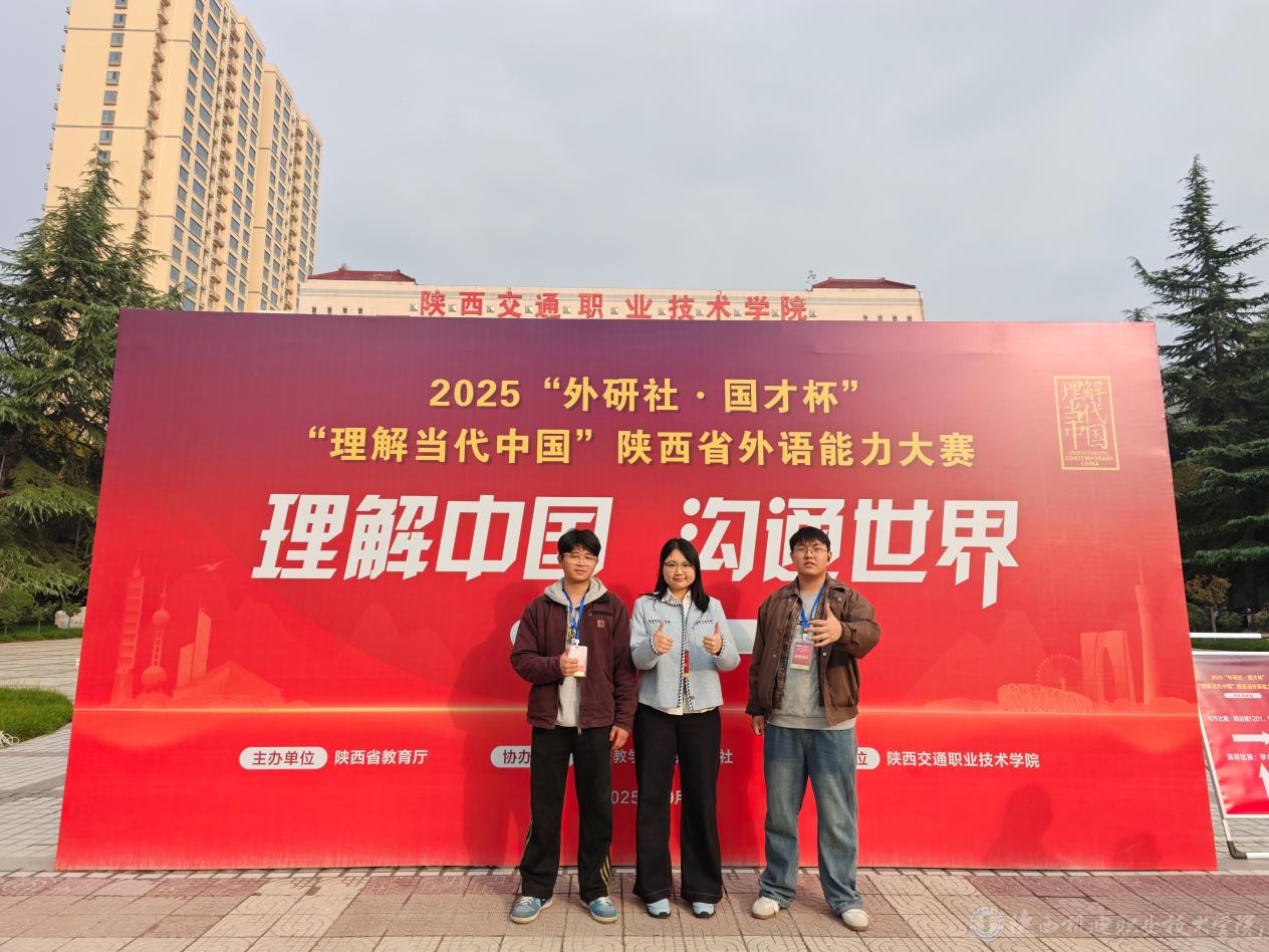 10月25日至26日,2025“外研社·国才杯”“理解当代中国”陕西省外语能力大赛(高职组)在陕西交通职业技术学院盛大举行。AC米兰中文官方网站24大数据2班蒋璐微(指导教师:王春宁)荣获写作赛项一等奖,24机械制造2班穆向阳(指导教师:周毅)和23机电技术2班杨灿(指导教师:宋冰心)双双荣获写作赛项三等奖。