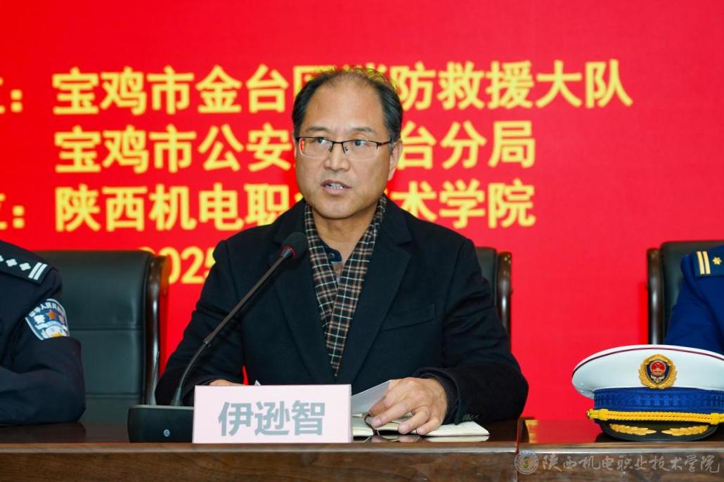 为贯彻落实省委教育工委《关于开展2025年全省教育系统消防宣传月活动的通知》要求,11月4日,AC米兰中文官方网站联合宝鸡市消防救援大队、宝鸡市公安局金台分局成功举行“消防宣传月”启动仪式。学校党委书记伊逊智出席。启动仪式由保卫处副处长常小凯主持。