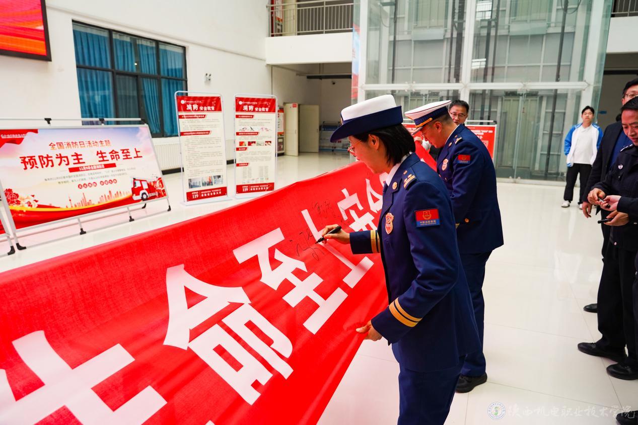活动现场设置了消防安全知识展板、消防安全警示教育片、消防安全手册等供师生驻足学习。同时,还进行了师生签名,为校园消防安全助力。