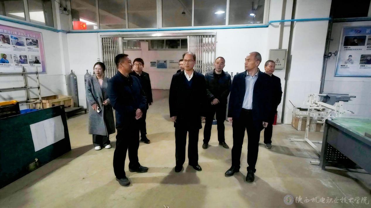 在学院领导的陪同下,伊逊智、侯晓方一行深入实地对学生课堂教学、车间实训、宿舍管理等情况进行了查看。