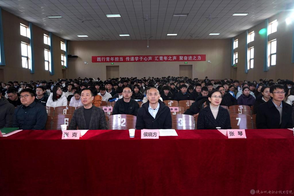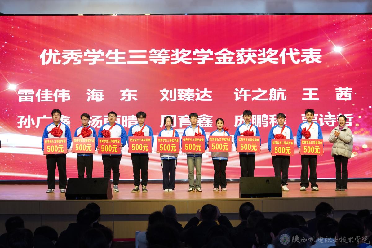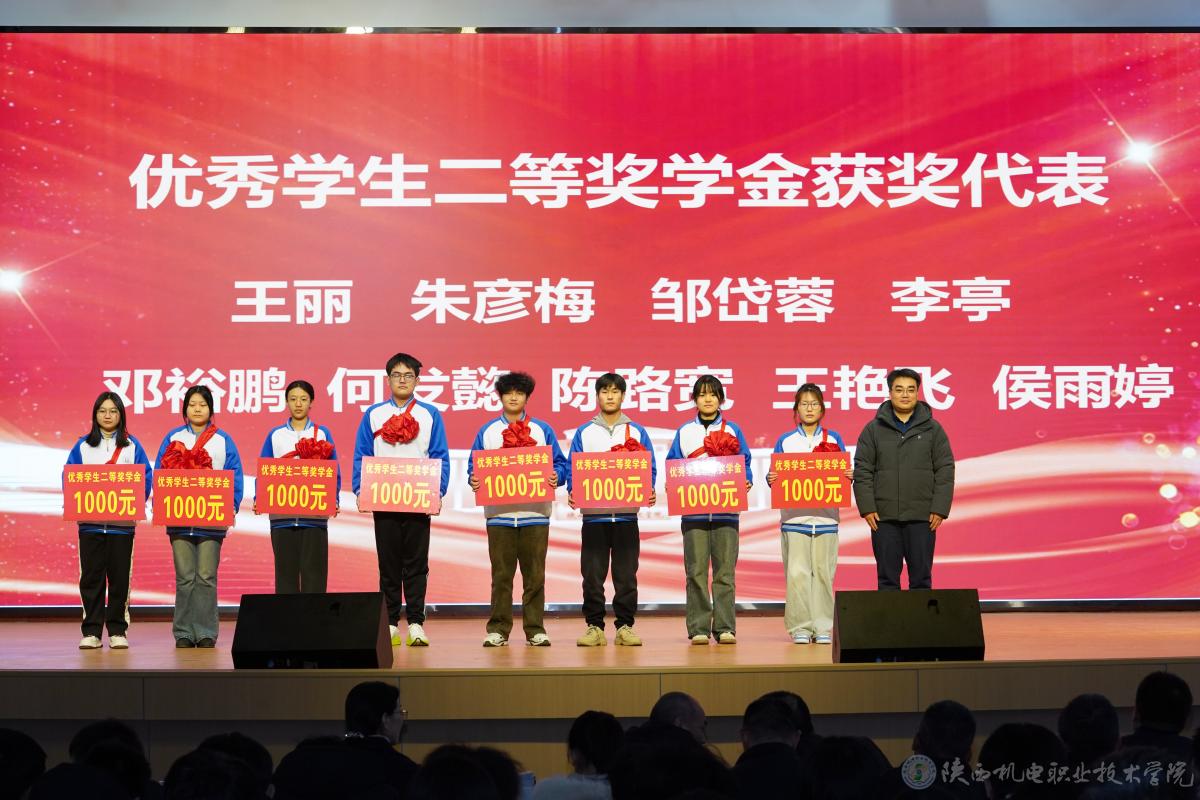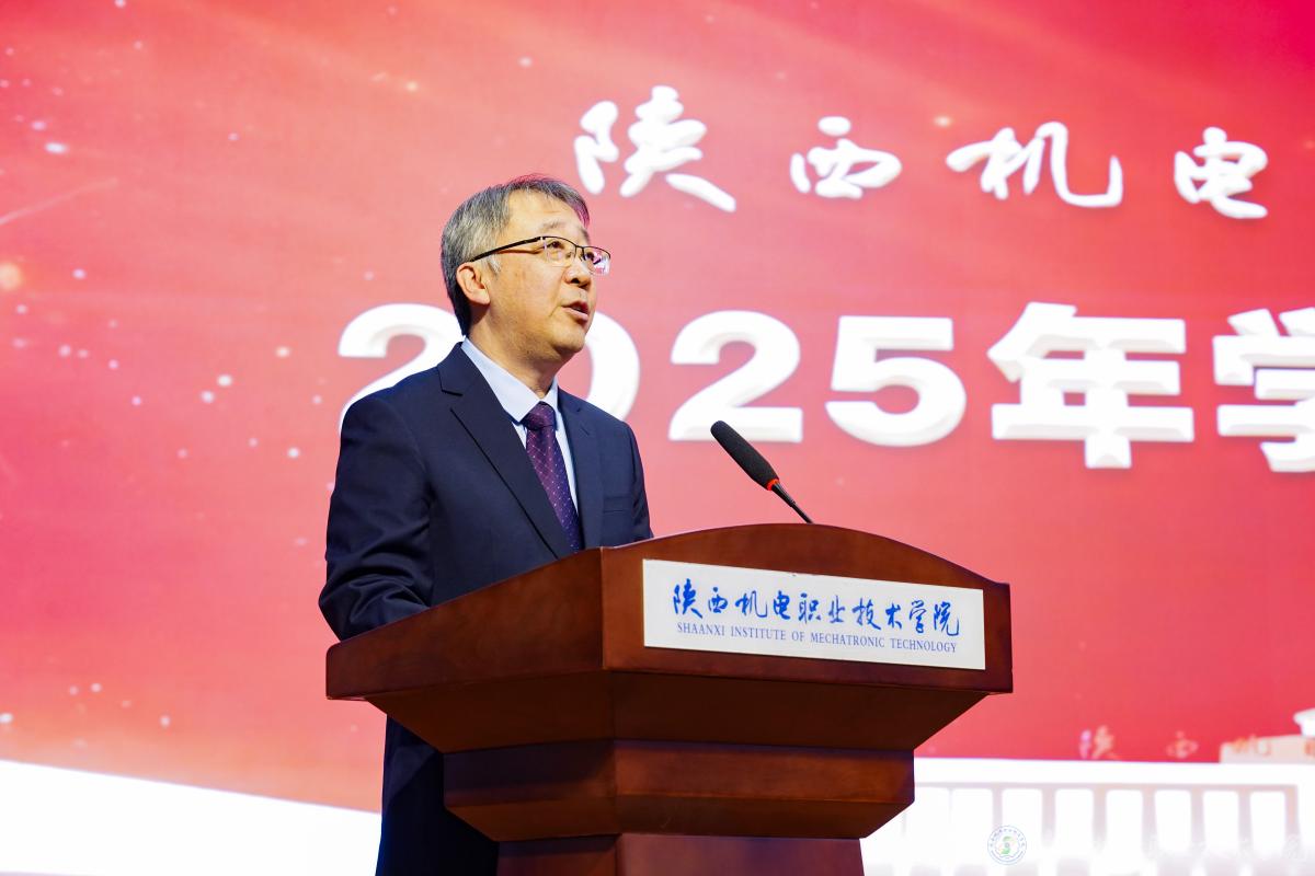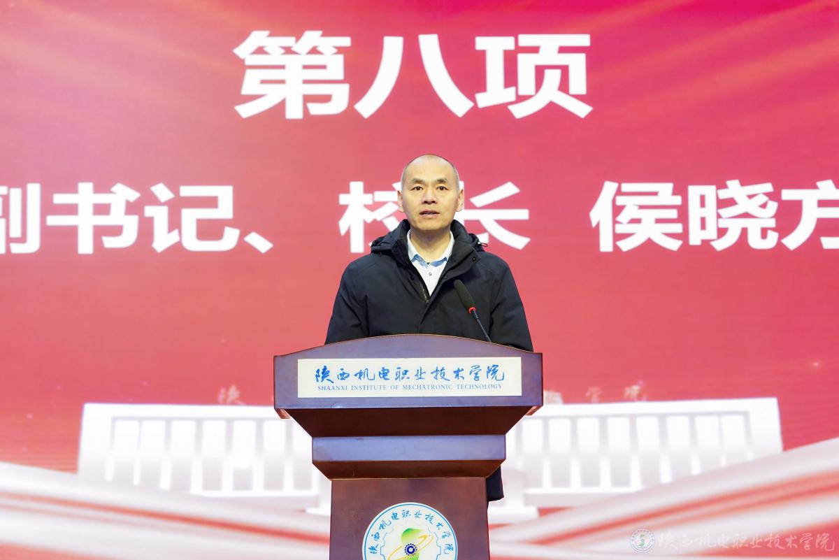 侯晓方在讲话中总结回顾了学校一年来取得的各项成绩,表示这些成绩和荣誉的取得,都凝聚着每一位同学辛勤努力、刻苦拼搏的汗水。同时也对同学们提出了四点殷切期望,一要锚定国之大者,让理想与时代同频;二要坚持德技并修,让品格与技能齐飞;三要深耕专业领域,让技能与创新共生;四要拓展国际视野,让青春与全球共振。希望同学们在陕机电的沃土上,成长为支撑中国式现代化的能工巧匠、大国工匠!