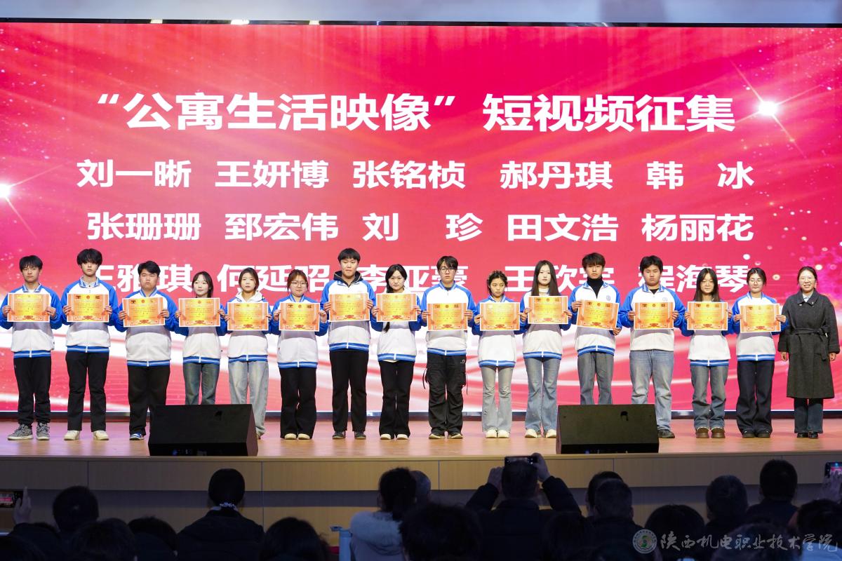 “公寓生活映像”短视频征集的优秀学生获奖代表领奖