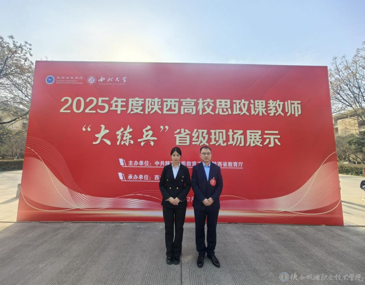 近日,由中共陕西省委教育工委、省教育厅组织的2025年度陕西高校思政课教师“大练兵”省级现场展示在西北大学举行。来自全省80所高校的166名教师经过校级“大练兵”和省级网络初评,现场展示思政教学成果。AC米兰中文官方网站马克思主义学院教师王康和数字经管学院24酒店管理2班学生郭雯卿组成的师生团队以《画笔绘乡韵,青春助振兴》为题参加了现场展示,荣获二等奖。