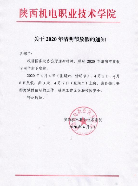 关于2020年清明节放假的通知