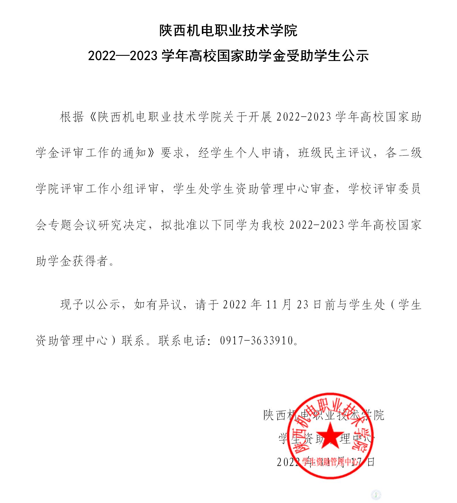 AC米兰中文官方网站2022-2023学年高校国家助学金受助学生公示名单