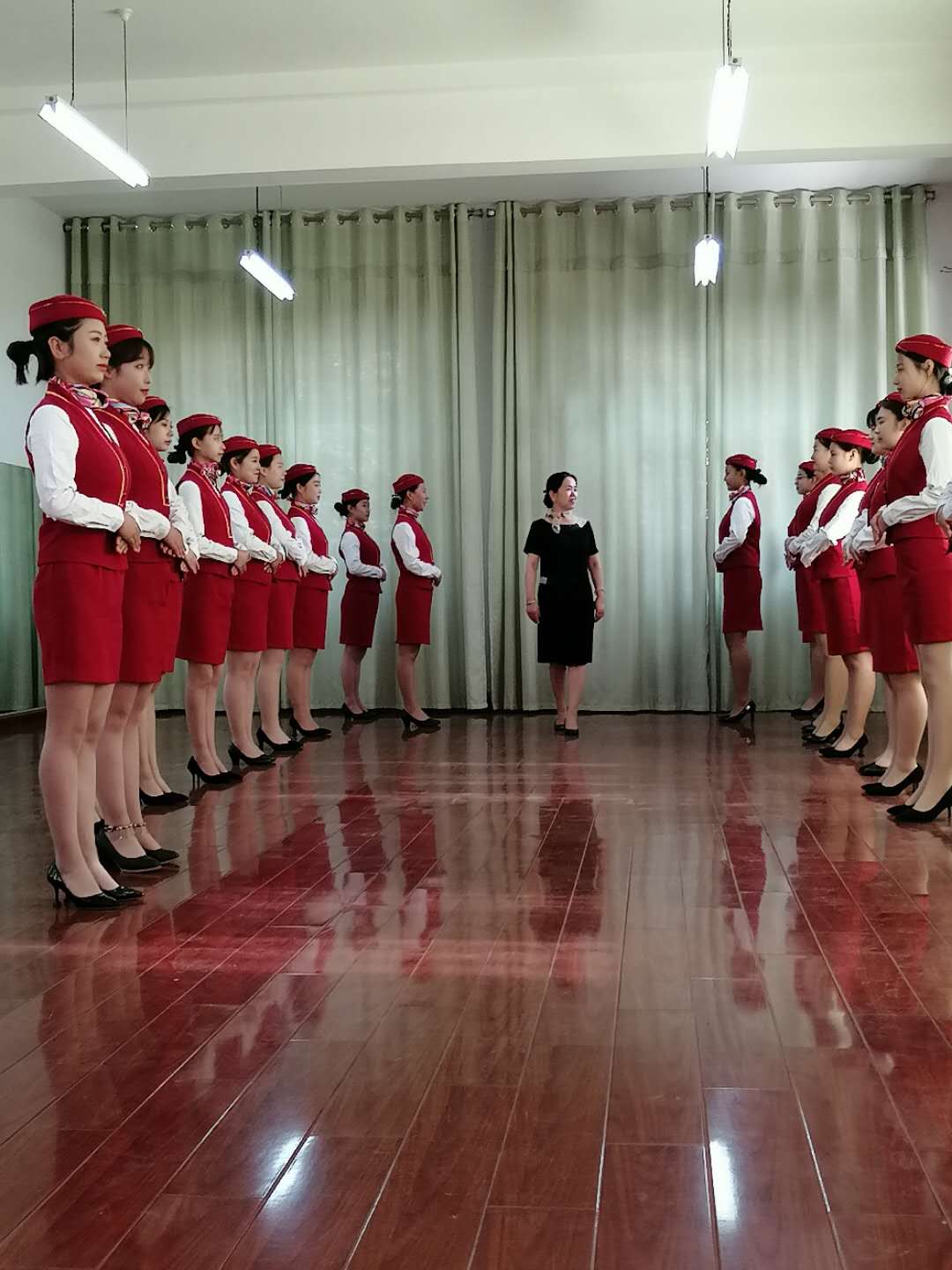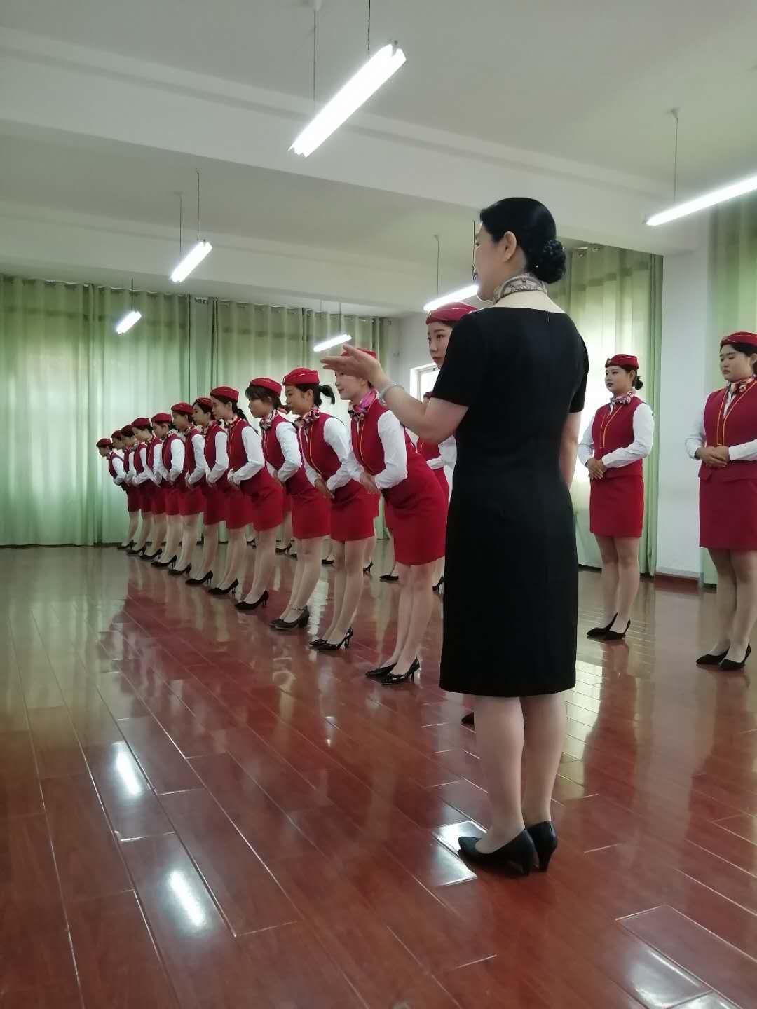 古之学者必严其师,师严然后道尊,经管与艺术学院17高铁乘务五年班本周礼仪实训课由我院邢院长授课,课前学生穿着整齐的实训服,做好开学第一节课的准备。