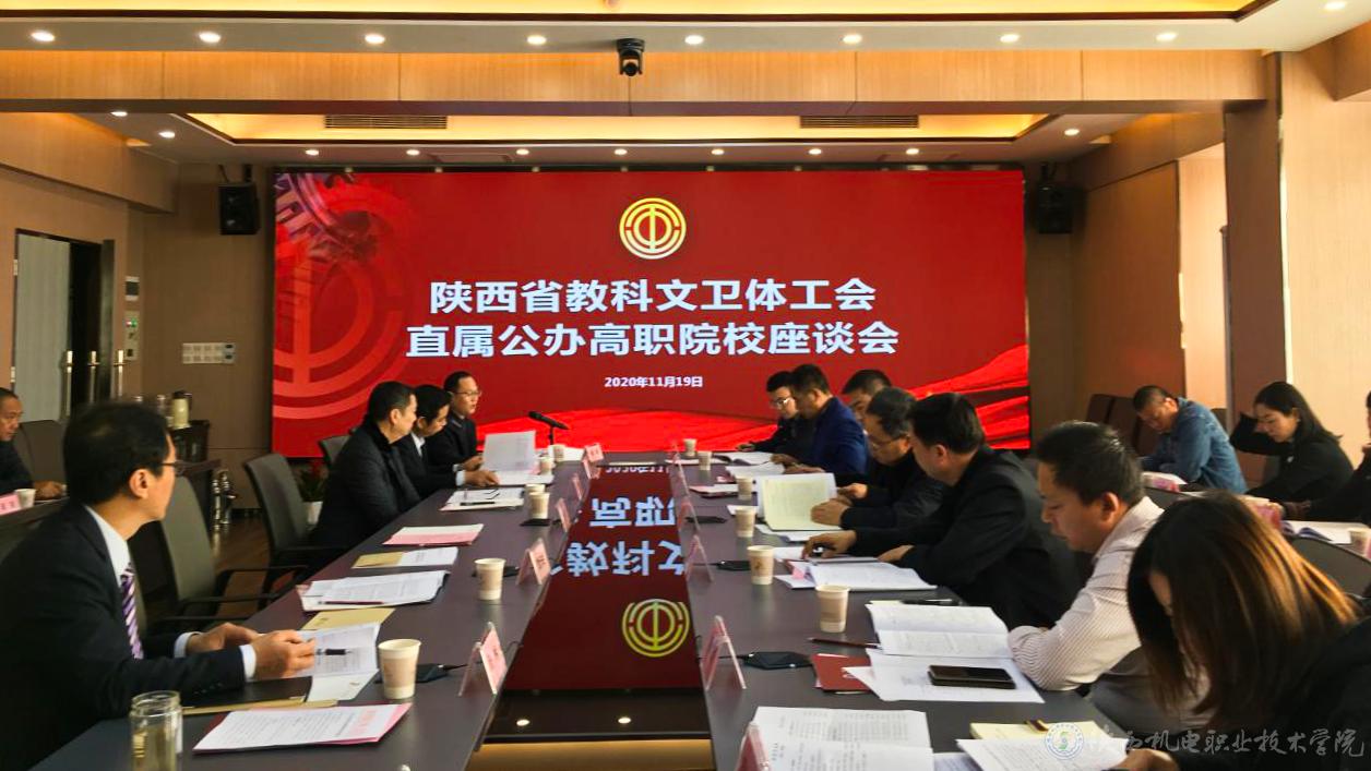 省教科文卫体工会于11月19日在陕西工业职业技术学院召开教科文卫体工会12家直属公办高职院校座谈会。米兰官网党委副书记邓新治代表院工会参加了会议。