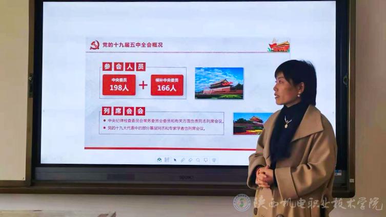 党支部书记白娟娟紧扣党的十九届五中全会主题,从全会概况、关键词、公报解读等方面进行宣讲解读;从“深化新时代教育评价改革总体方案”的总体要求、重点任务和组织实施等方面进行了剖析。结合部门工作实际,对深入学习领会五中全会精神和新时代教育评价总体方案精神谈了自己的认识和体会。
