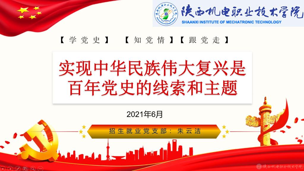 会上,朱云洁从中国共产党成立与中华民族伟大复兴、从百年党史四个历史时期中的五个重要节点明确使命担当、中国共产党人的世界情怀和使命担当等三个方面进行讲解,并结合招生就业处的工作实际情况,殷切期望全体党员要认真学习党史相关内容,坚定理想信念,奋力践行初心使命,传承红色基因;统一思想、凝心聚力,努力推动各项工作,为实现“两个一百年”奋斗目标贡献力量。