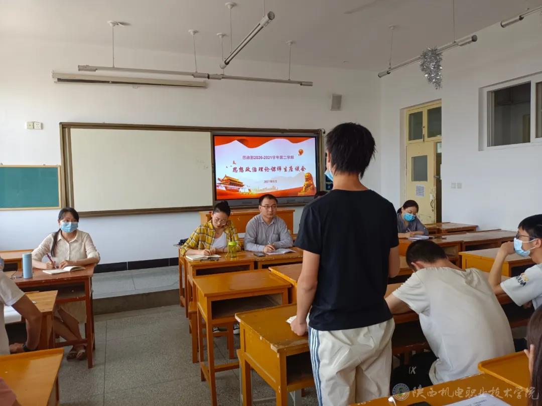 为更好的了解学生对思想政治课教学方面的意见和建议,推进思政课改革创新,4月26日下午,思政部在教学楼509教室召开宝福路校区2020-2021学年第二学期期中思想政治理论课师生座谈会,6名思政课专任教师和40多名学生代表参加会议,会议由思政教研室主任王康老师主持。