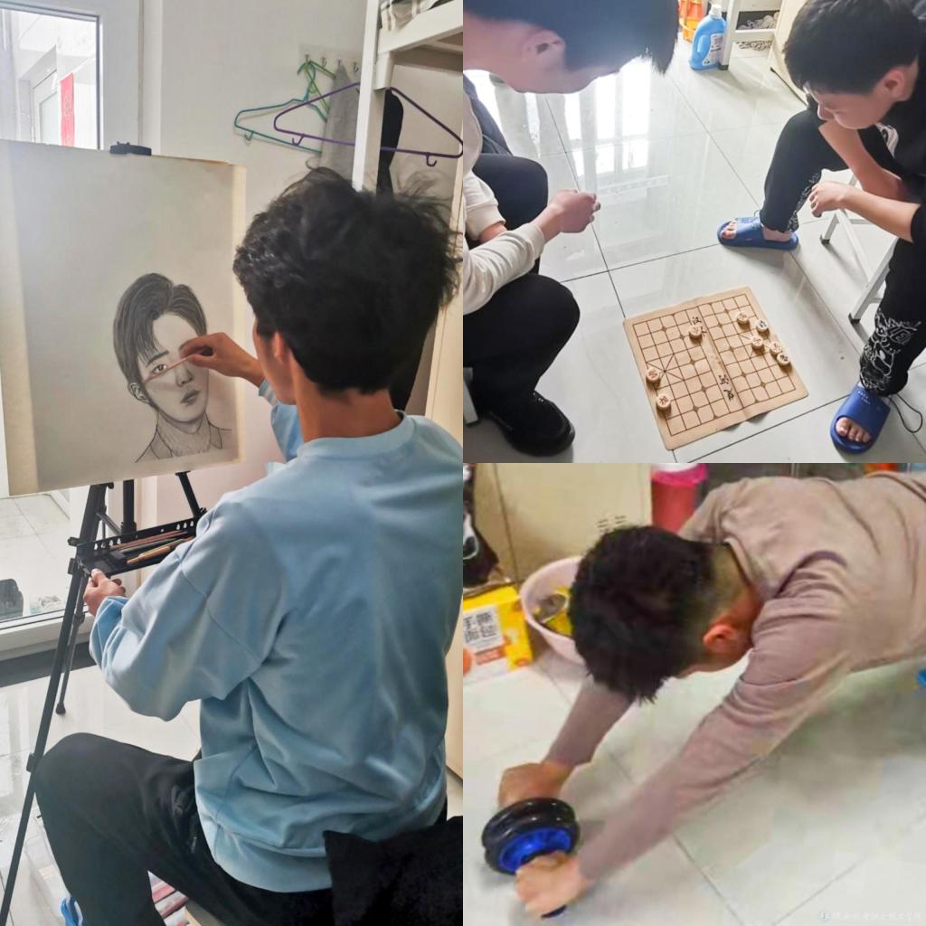 在学校严格的疫情防控管理中,志愿者们乐观的心态、灿烂的笑容温暖着校园里每一个人。封闭管理期间,线上教学丝毫不影响同学们的学习热情,他们认真听讲,积极与授课教师进行线上互动,部分同学更是利用课余时间培养自己的兴趣爱好,丰富自己的“封闭生活”。