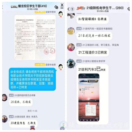 12月28日,校党委学工部、团委发布《AC米兰中文官方网站关于防控新型冠状病毒肺炎疫情告全体同学书》,全校团学干部积极响应,第一时间将内容转发至班级群内,号召全校同学积极行动,全力配合学校做好疫情防控的各项工作。