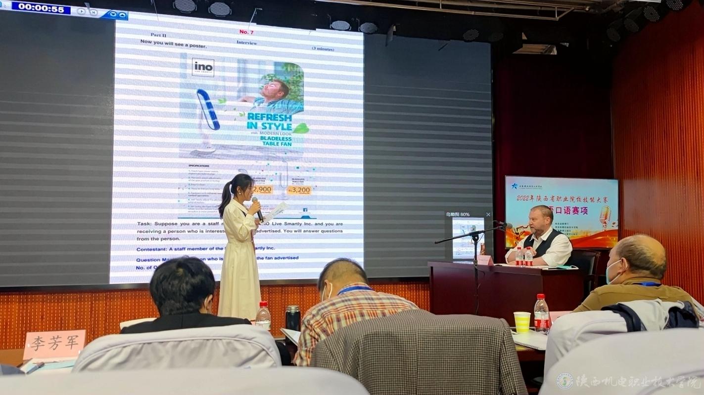 本届大赛由陕西省教育厅主办,西安铁路职业技术学院承办,高等教育出版社和外语教学与研究出版社联合协办。全省38所高职院校共计73名选手参加了比赛,其中包括英语专业组10人以及非英语专业63人。大赛完全对接国赛,分别由“中国故事”“职场描述”“职场交流”“职场辩论”四个环节组成。