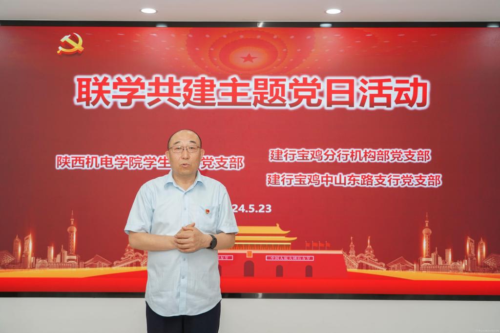为深入贯彻落实党的二十大精神,以基层党组织为载体,以党建共建为动力,充分发挥各党组织优势,形成优势互补、资源共享的基层党建新格局,5月23日下午,学生工作党支部联合建行宝鸡分行机构部党支部、建行宝鸡中山东路支行党支部在米兰官网蟠龙校区图书馆2楼思政课虚拟仿真教学中心开展“学习榜样 凝聚力量”联学共建主题党日活动,“联学共建”支部全体党员参加,活动由学生工作党支部王建斌主持。