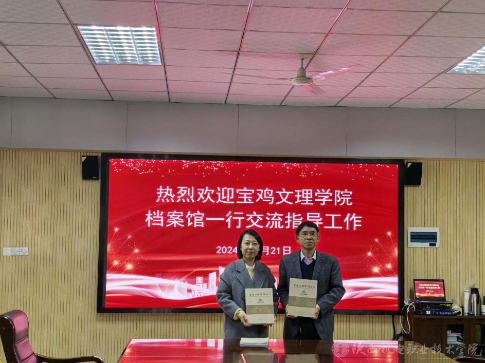 随后,李建峰将《宝鸡文理学院校史1958—2022》《宝鸡文理学院档案工作规章制度汇编》赠予米兰官网,这为米兰官网在校史编研、制度修订方面提供了极大的借鉴意义。