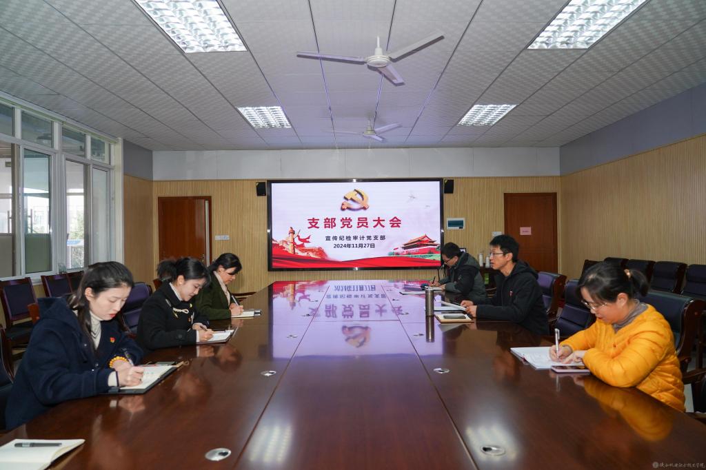 为进一步学习宣传贯彻党的二十届三中全会精神,全面总结 2024 年度工作,激励教职工不断增强教书育人、管理育人、服务育人的自觉性和责任感,11月27日上午,宣传纪检审计党支部在蟠龙校区图书馆二楼会议室召开支部党员会议,支部书记李明主持会议并讲话,全体党员参加会议。