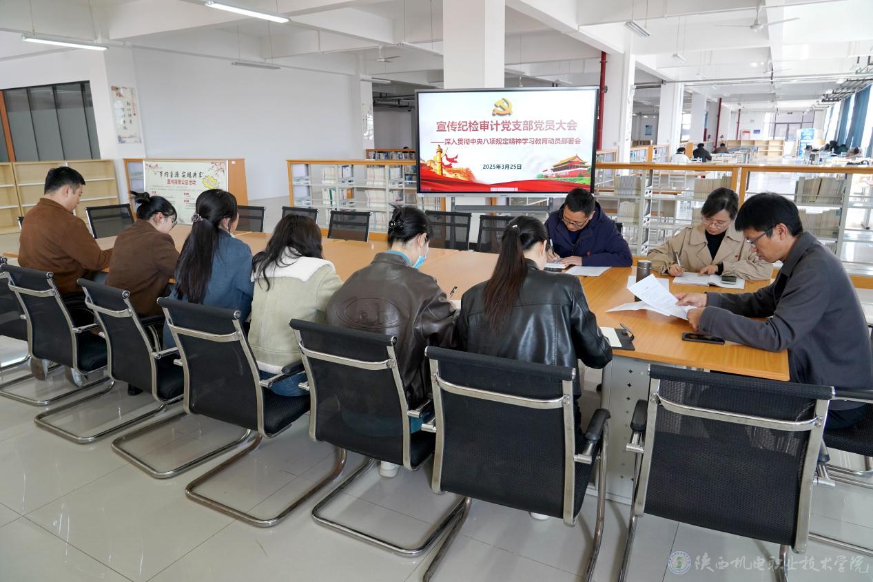 3月25日,宣传纪检审计党支部在蟠龙校区图书馆二楼阅览厅召开深入贯彻中央八项规定精神学习教育动员部署会,支部全体党员参会。会议由支部书记李明主持。