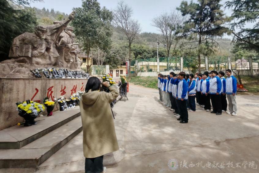 春季的宝鸡烈士纪念园,苍松翠柏,庄严肃穆。活动在雄壮的《义勇军进行曲》中正式开始,全体师生在宝鸡烈士纪念园英雄群雕前齐声高唱国歌。唱毕,全体肃立,为烈士默哀、行鞠躬礼,以无声的敬意告慰英魂。